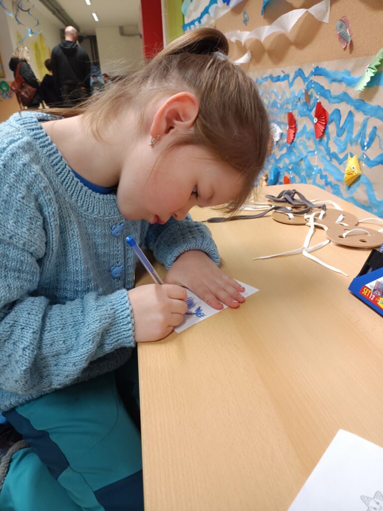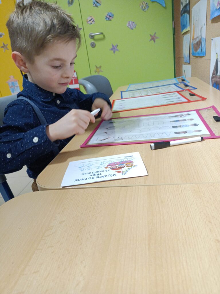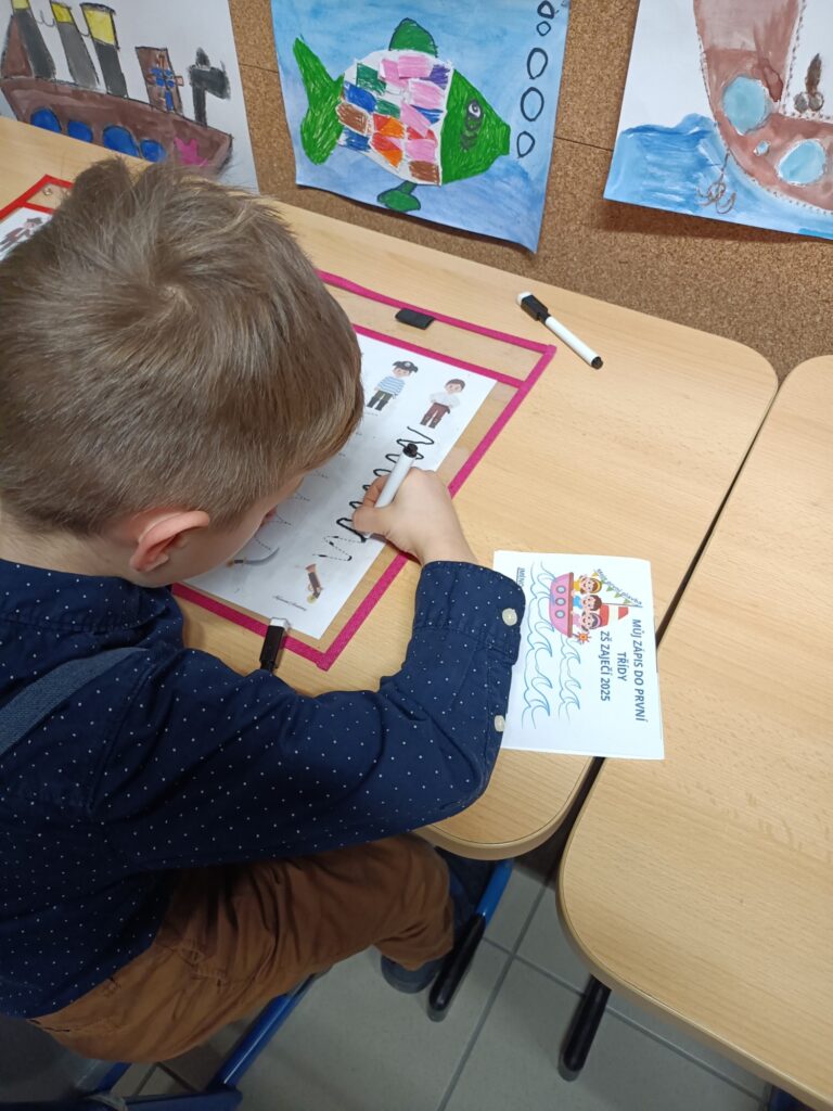 Paní učitelky připravily pro budoucí školáky hravé odpoledne inspirované světem moře a objevování. Škola se proměnila v přístav plný lodí, námořníků i potápěčů a děti se vydaly na symbolickou plavbu za poznáním. Na jednotlivých stanovištích plnily námořnické úkoly, porovnávaly piráty, počítaly poklady nebo hledaly správné cesty k majáku. Rovněž vyzkoušely tvořivé úkoly – například výrobu papírové  loďky.