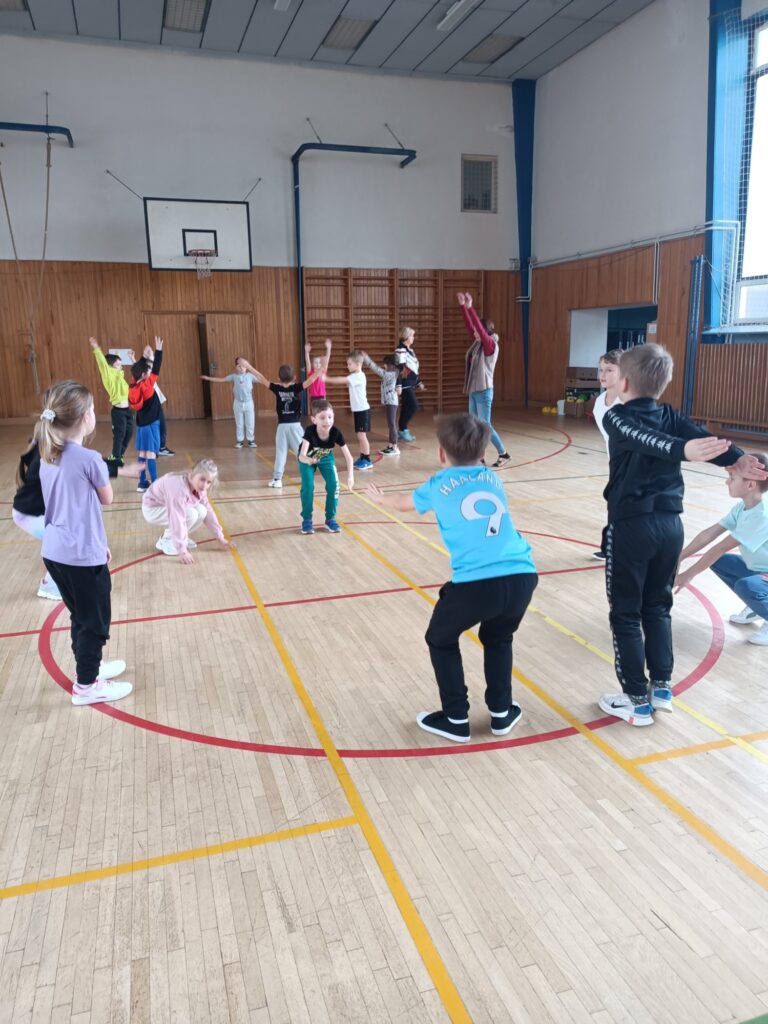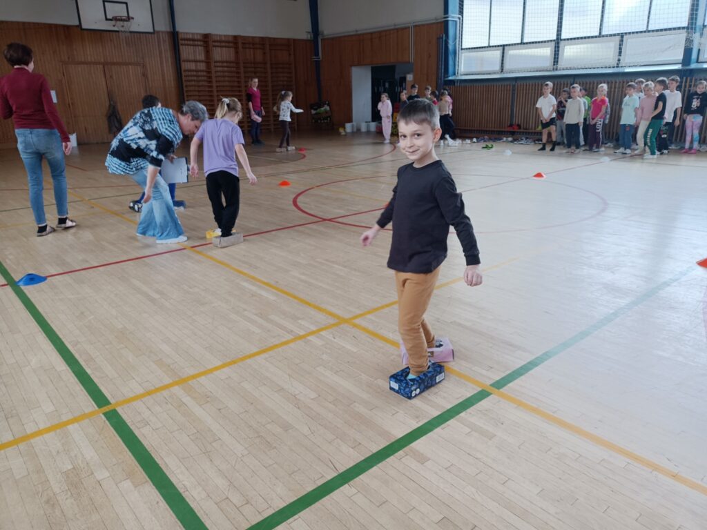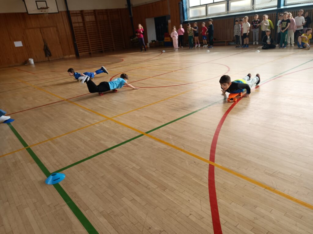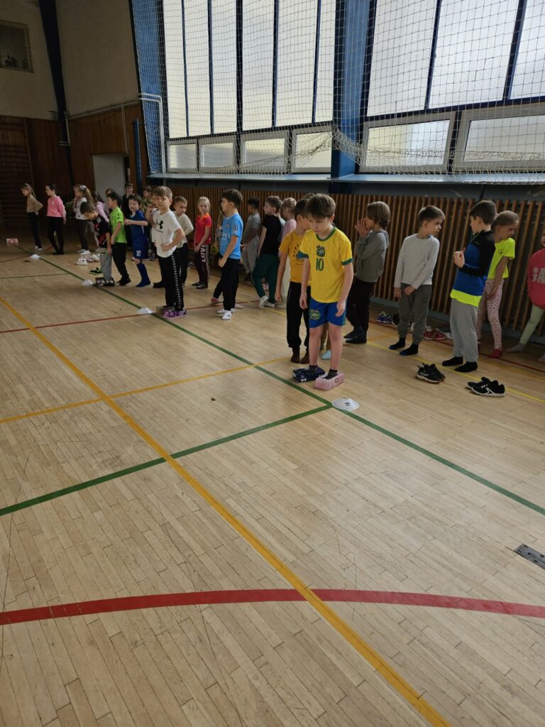 Zimní olympijské hry jsme si vyzkoušeli i v naší dvouhodinovce tělocviku. Prvňáčci, druháci i třeťáci se proměnili ve sportovce a soutěžili v různých zimních disciplínách. Nechybělo nadšení, týmová spolupráce ani radost z pohybu.