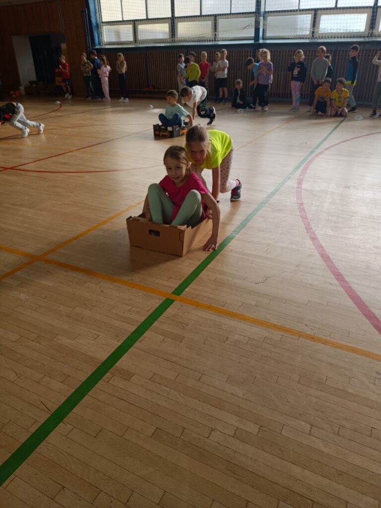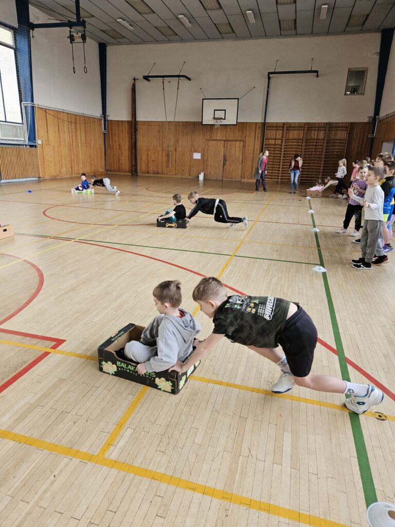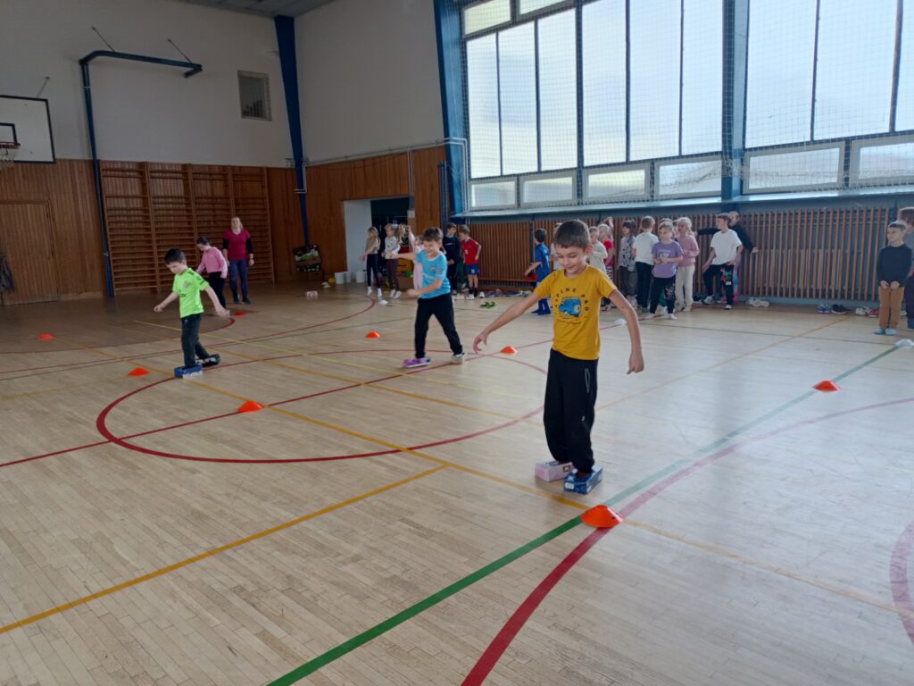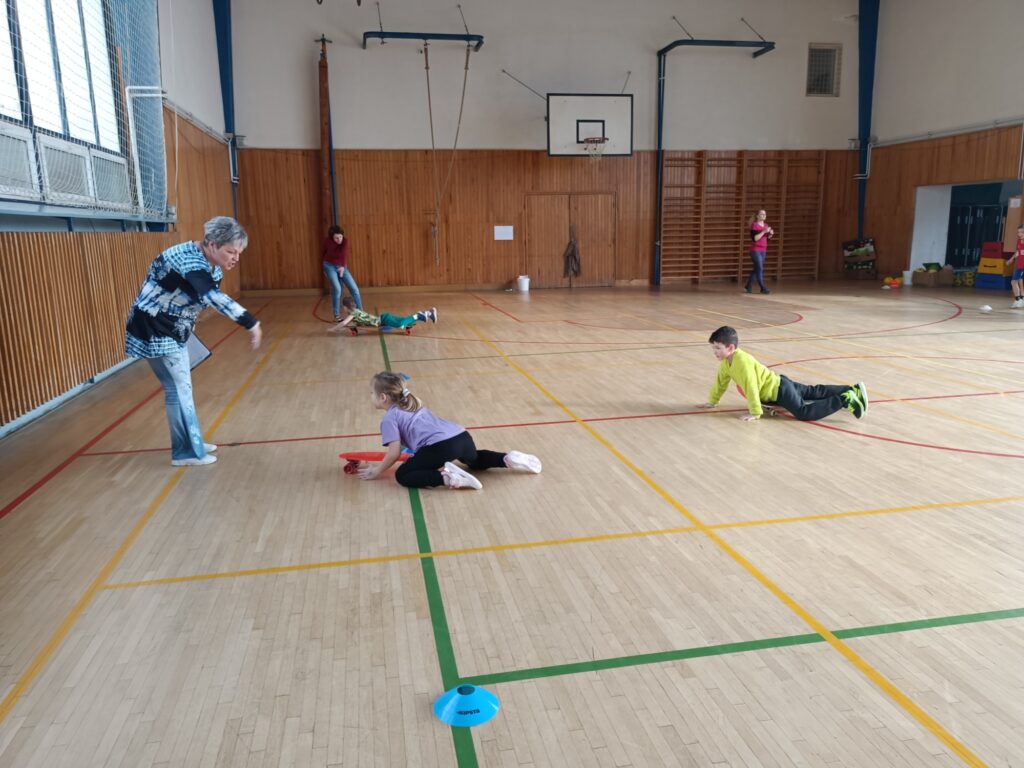 Zimní olympijské hry jsme si vyzkoušeli i v naší dvouhodinovce tělocviku. Prvňáčci, druháci i třeťáci se proměnili ve sportovce a soutěžili v různých zimních disciplínách. Nechybělo nadšení, týmová spolupráce ani radost z pohybu.